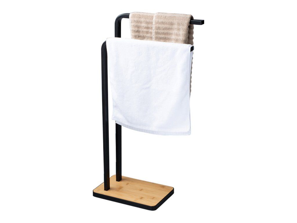 Stojan na uteráky, čierny kov/bambus, LABAV
