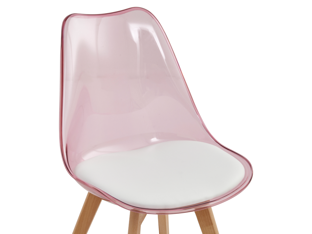 Stolička, transparentná ružová, akryl/ekokoža/buk, BALI 2 NEW