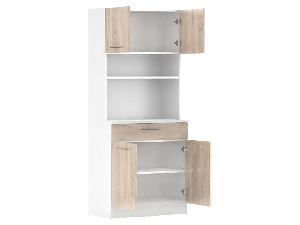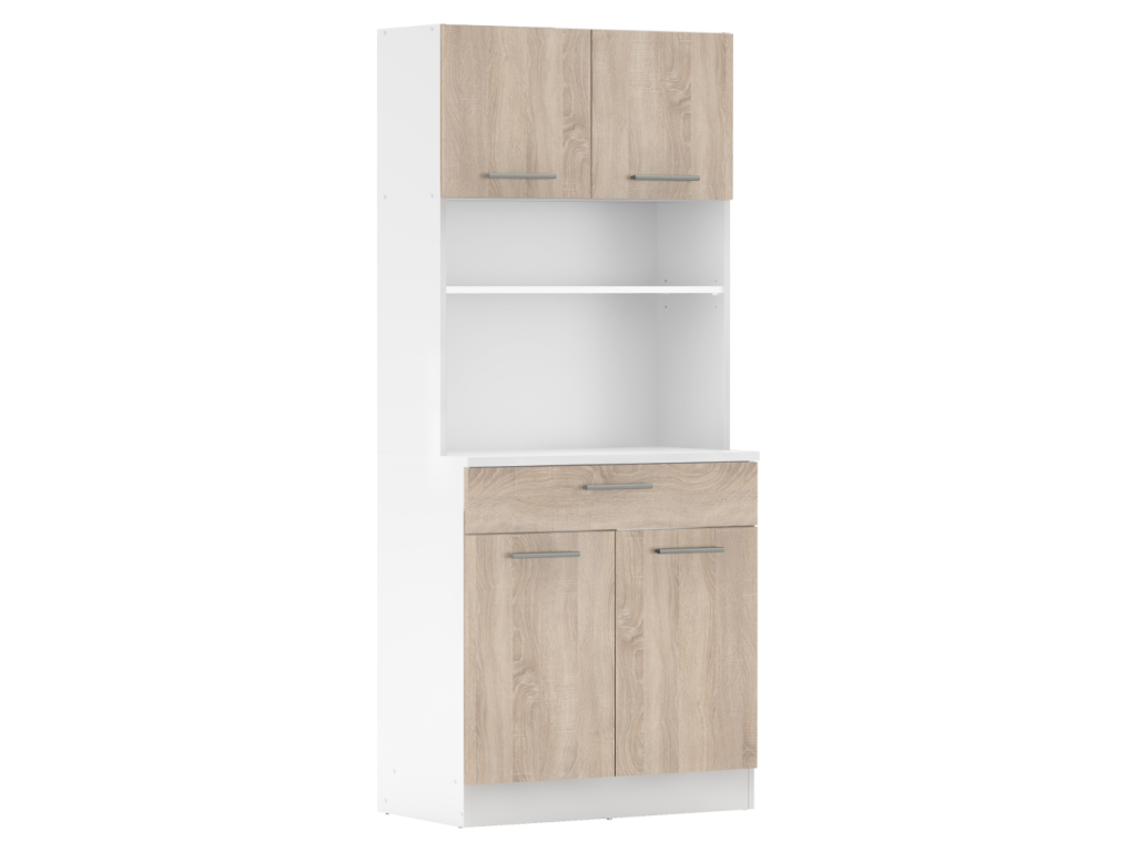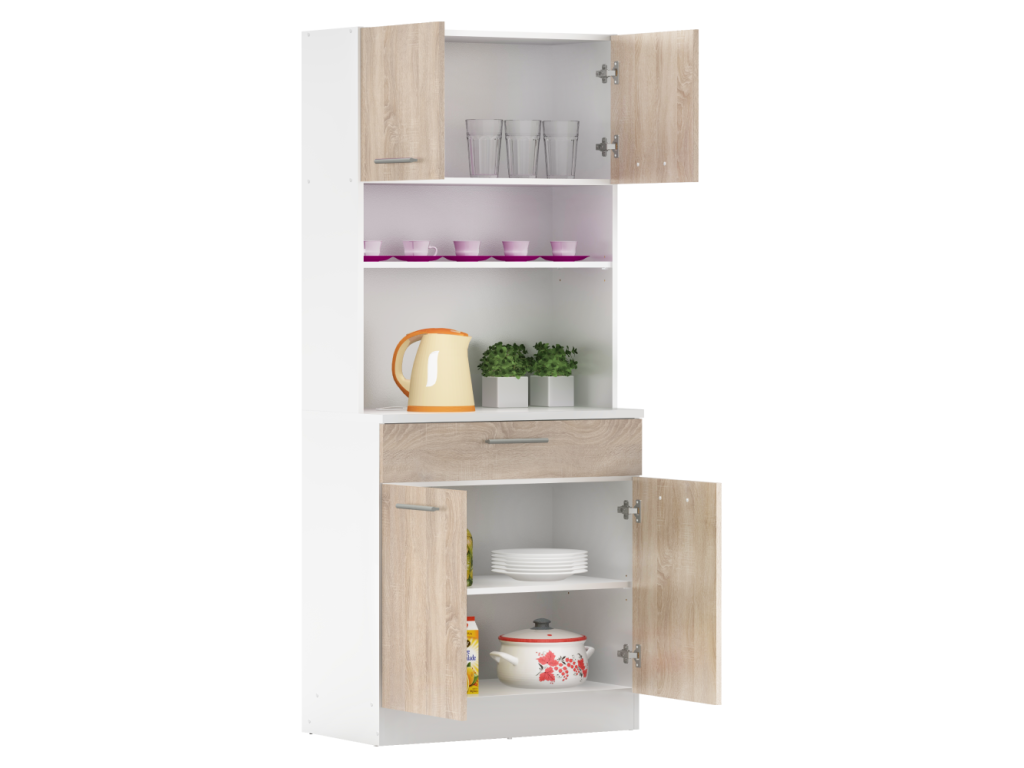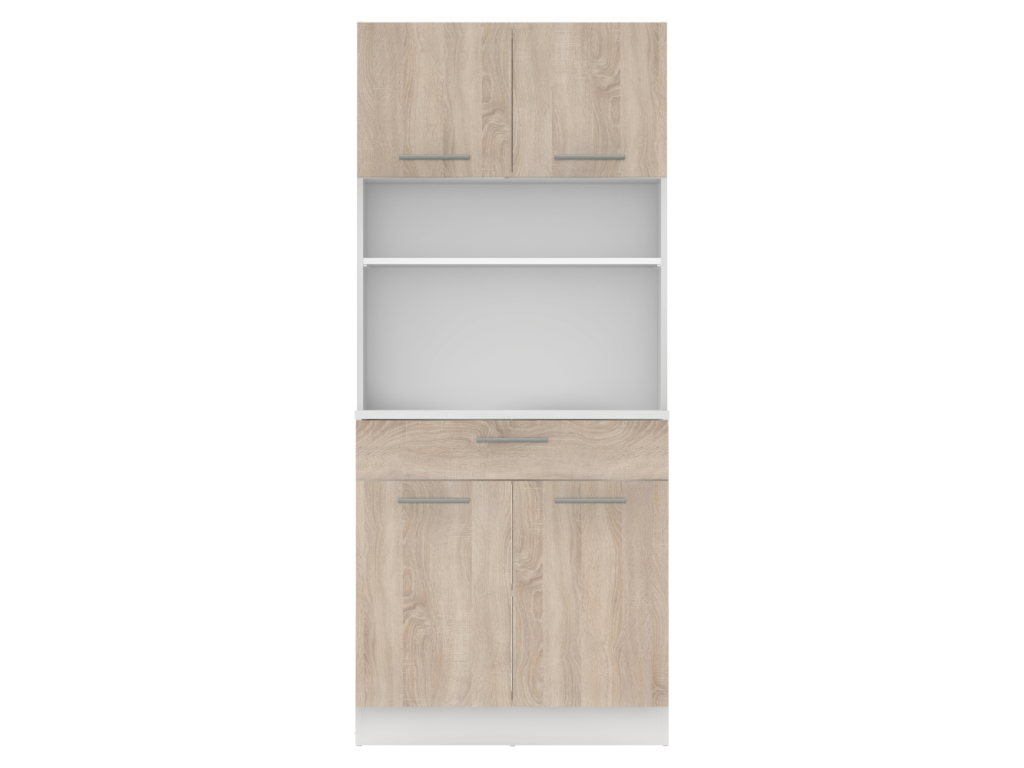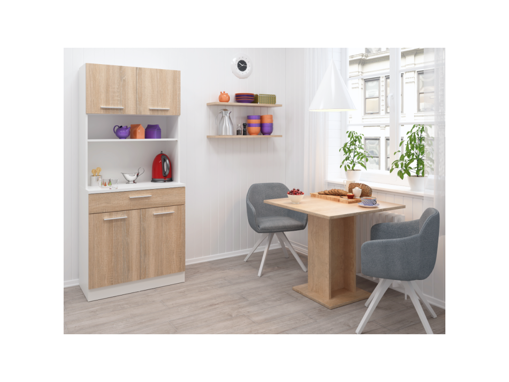 Štvordverový kredenc, biela/dub sonoma, DOMIS NEW