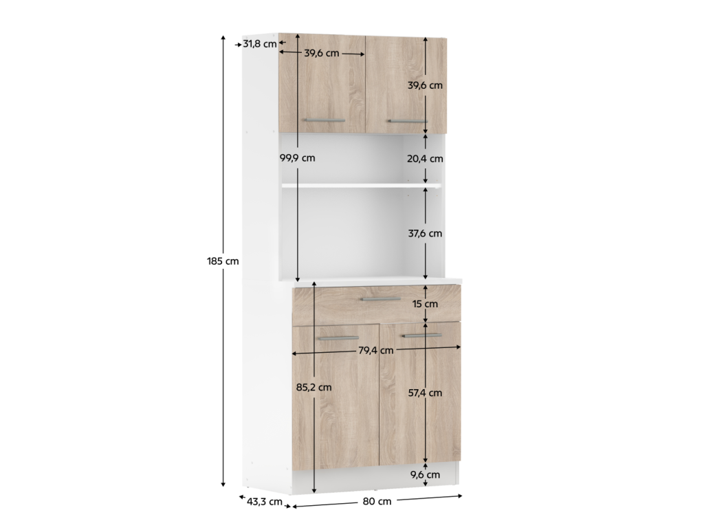 Rozmery (ŠxHxV): 80x43,3x185 cm