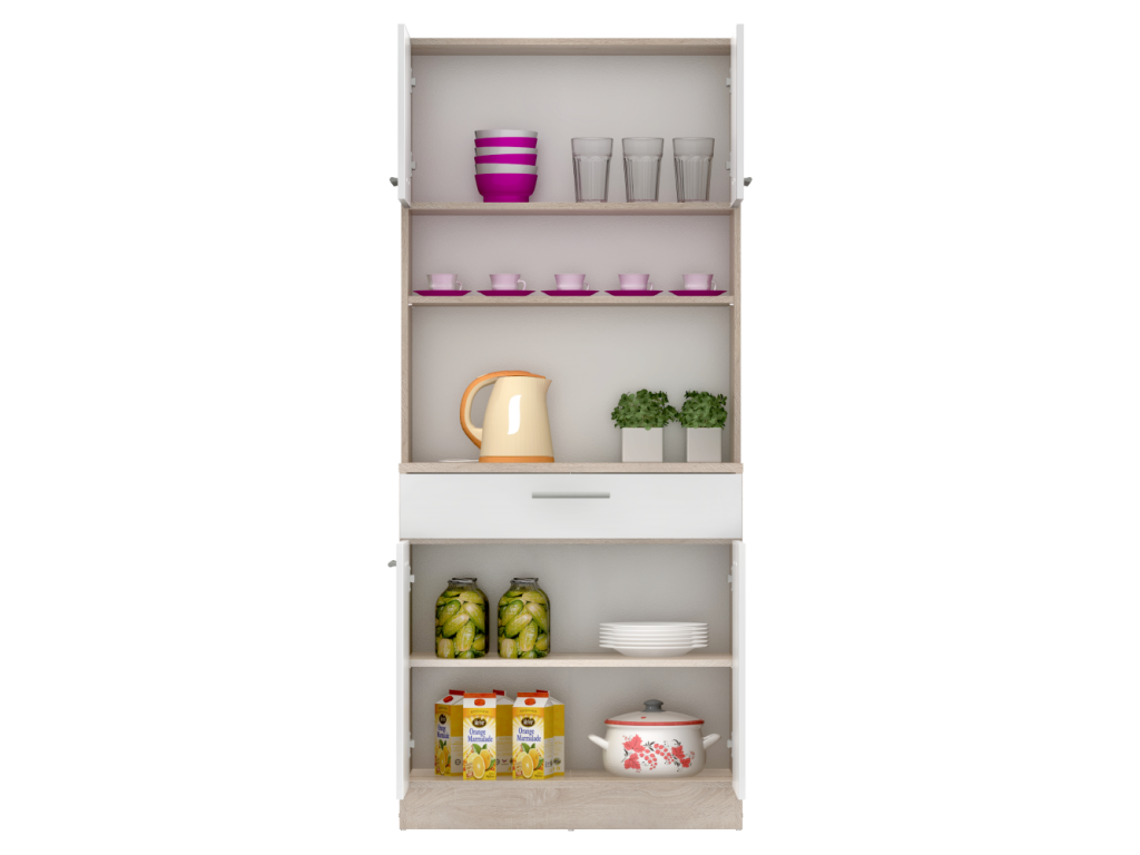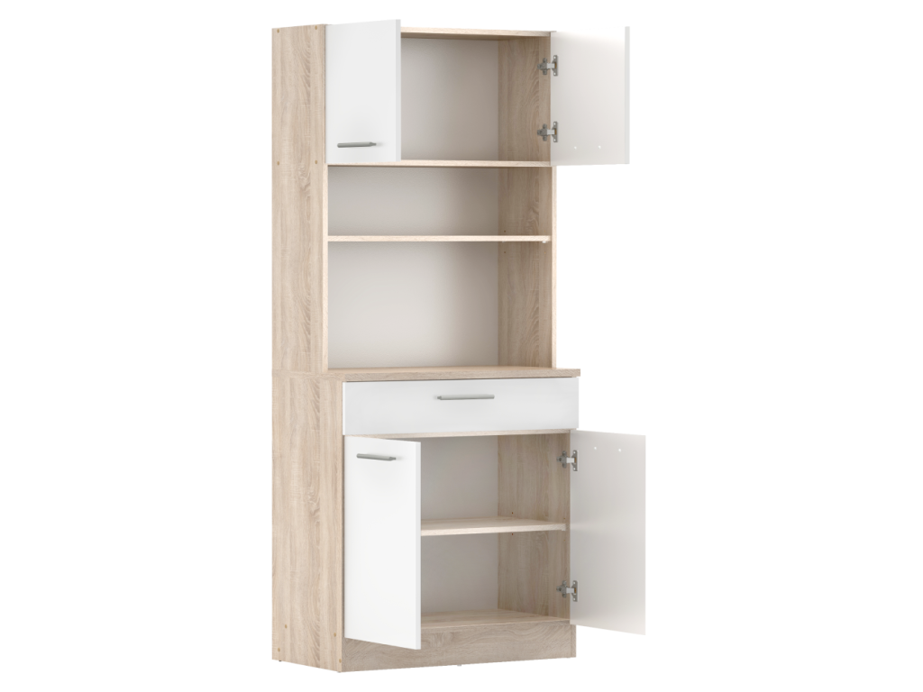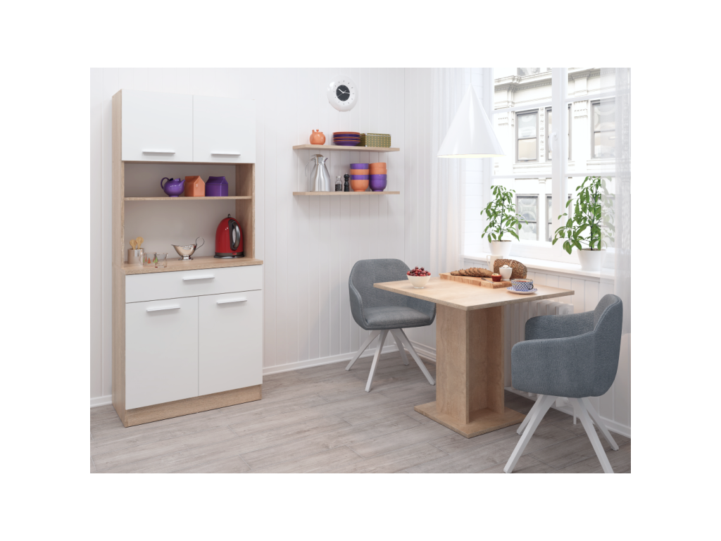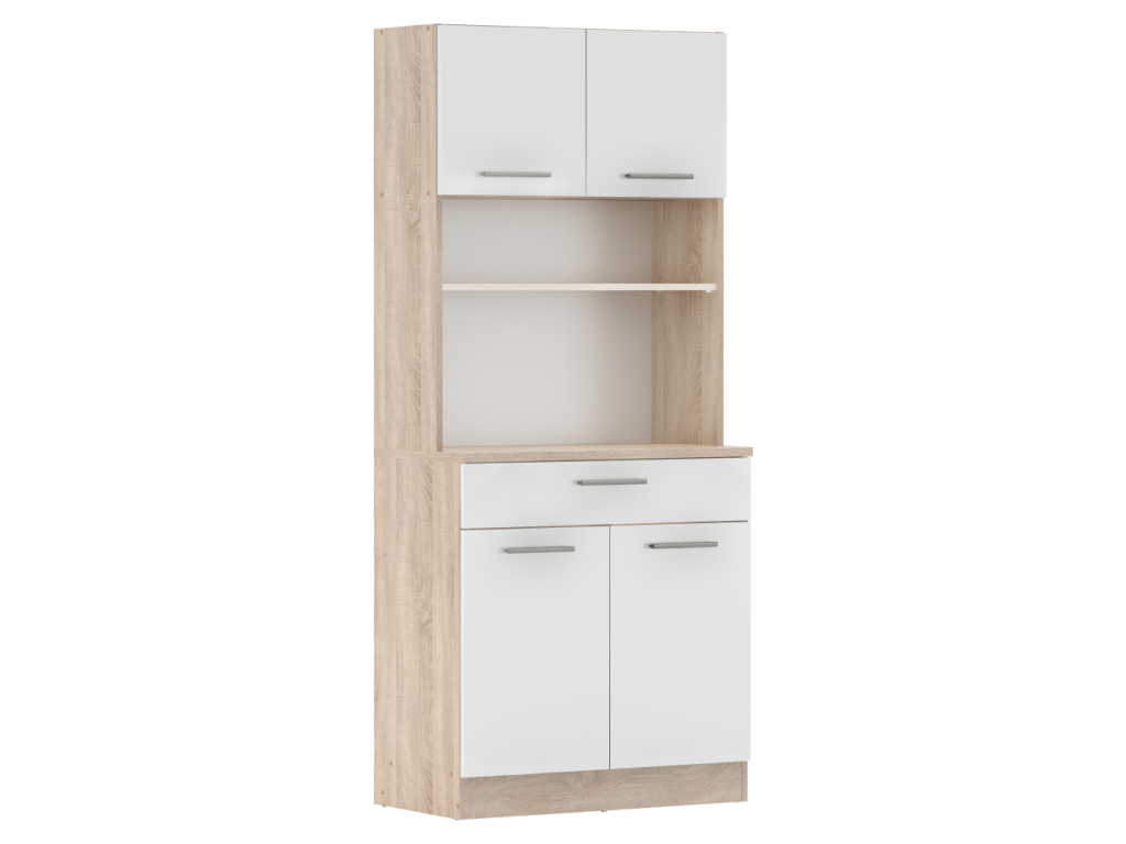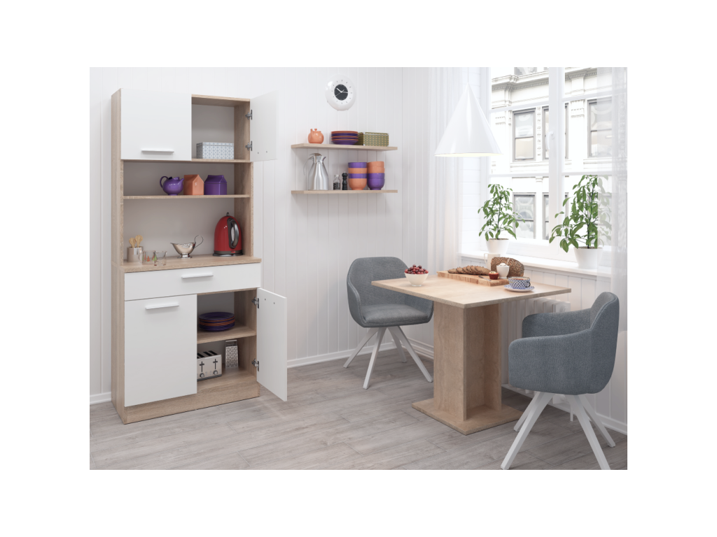 Štvordverový kredenc, dub sonoma/biela, DOMIS NEW