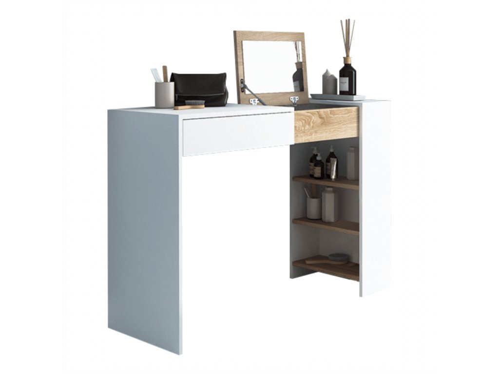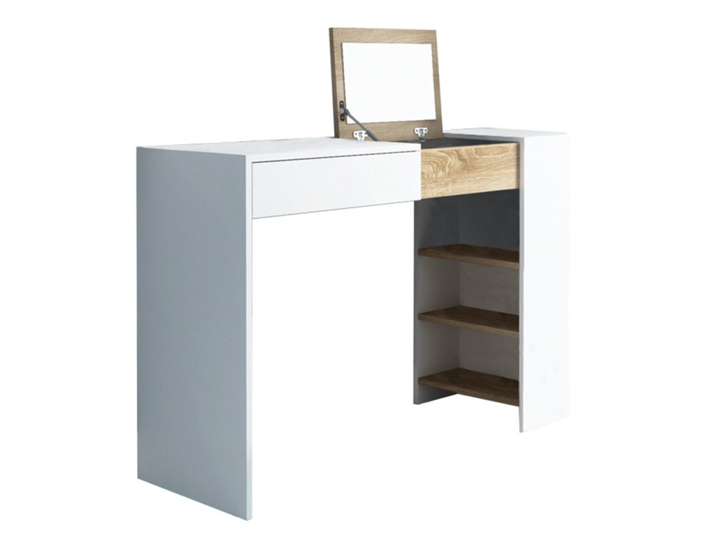Toaletný stolík/písací stôl, biela/dub sonoma, ELIS