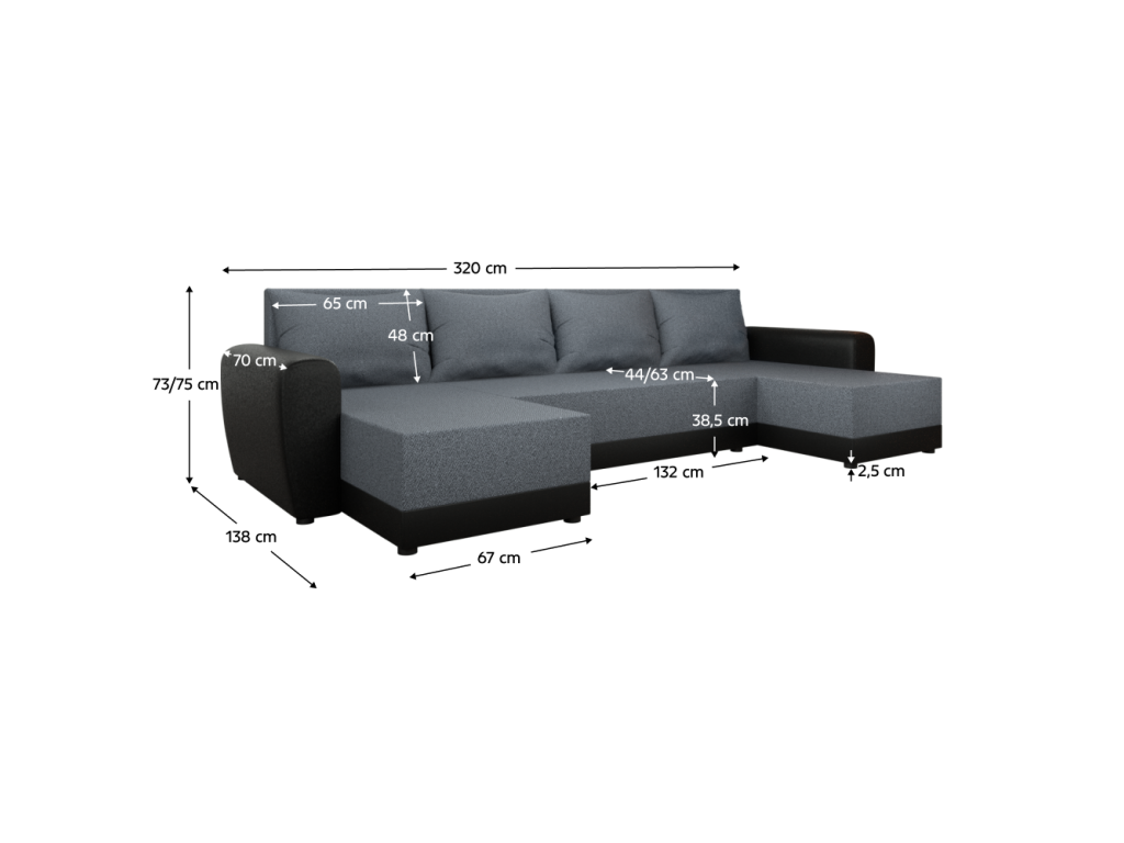 Rozmery (ŠxHxV): 320x138/138x73/75 cm