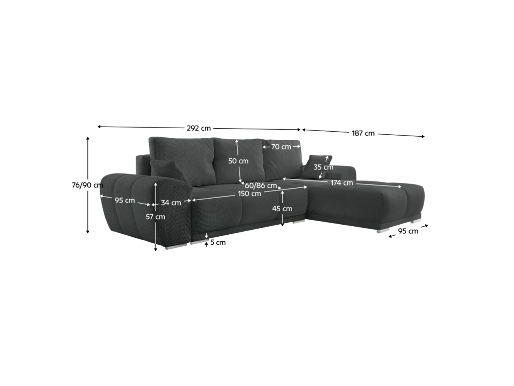 Rozmery (ŠxHxV): 292x187x76/90 cm