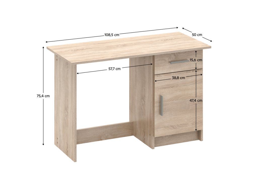Materiál: DTD laminovaná/HDF (dno šuplíka a zadná časť stola)Farba: dub sonoma/biela