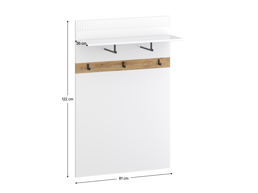Vešiaková stena 80, biela/dub evoke, VELIS