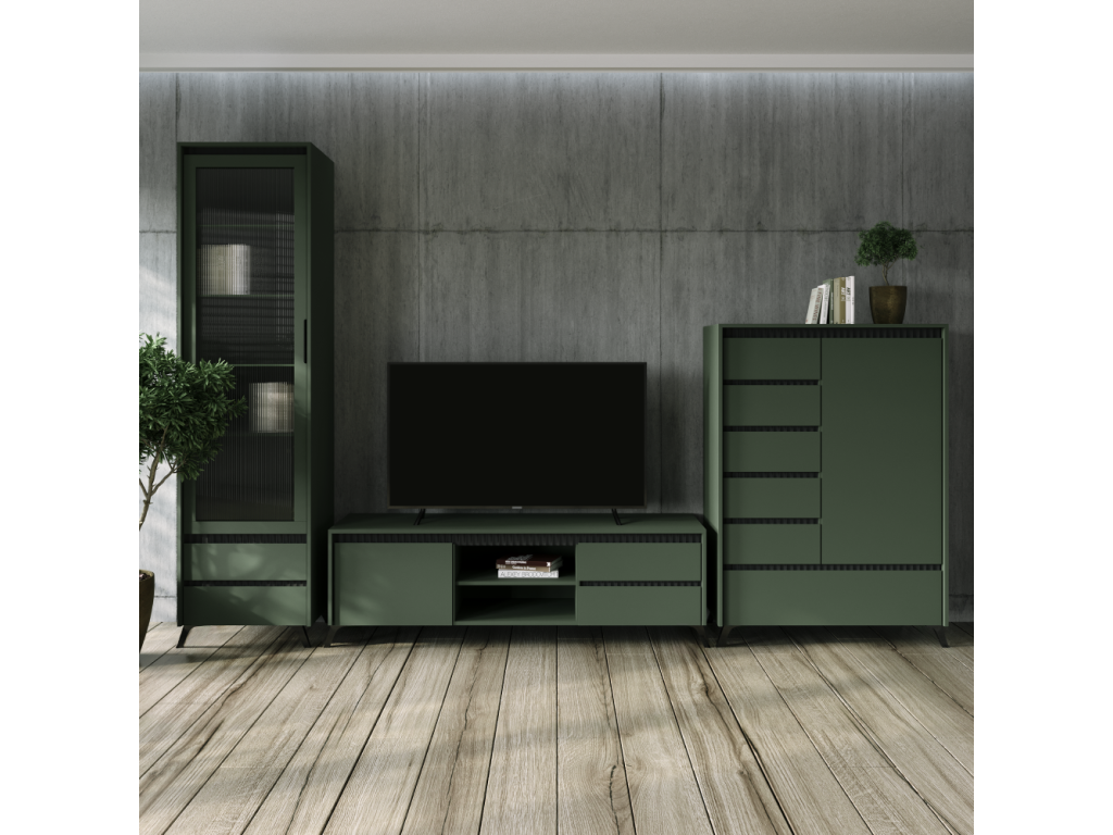 Materiál: laminovaná DTD/fóliovaná MDF/PVC fólia/skloFarba: smoke zelená/čierna