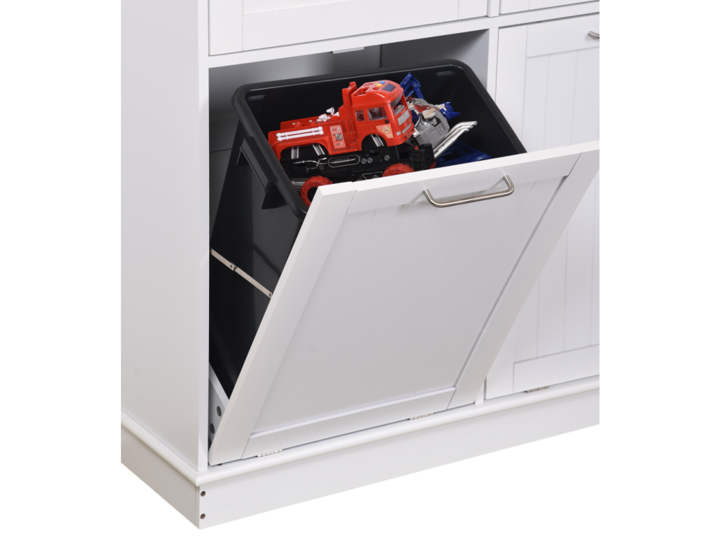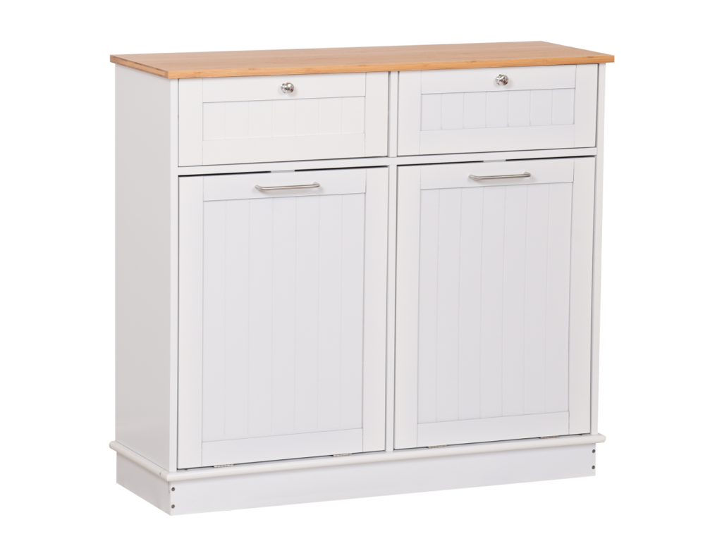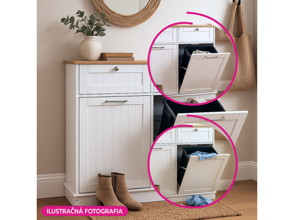 Výklopná skrinka s odpadkovým košom, biela/bambus, DELINS TYP 2