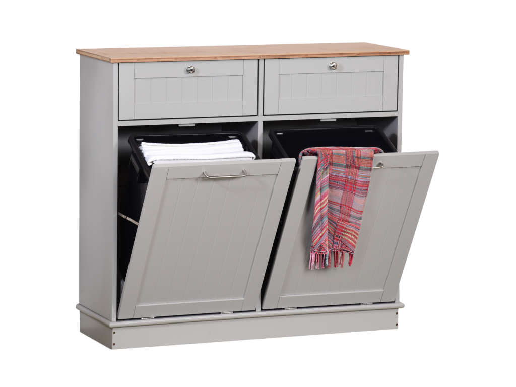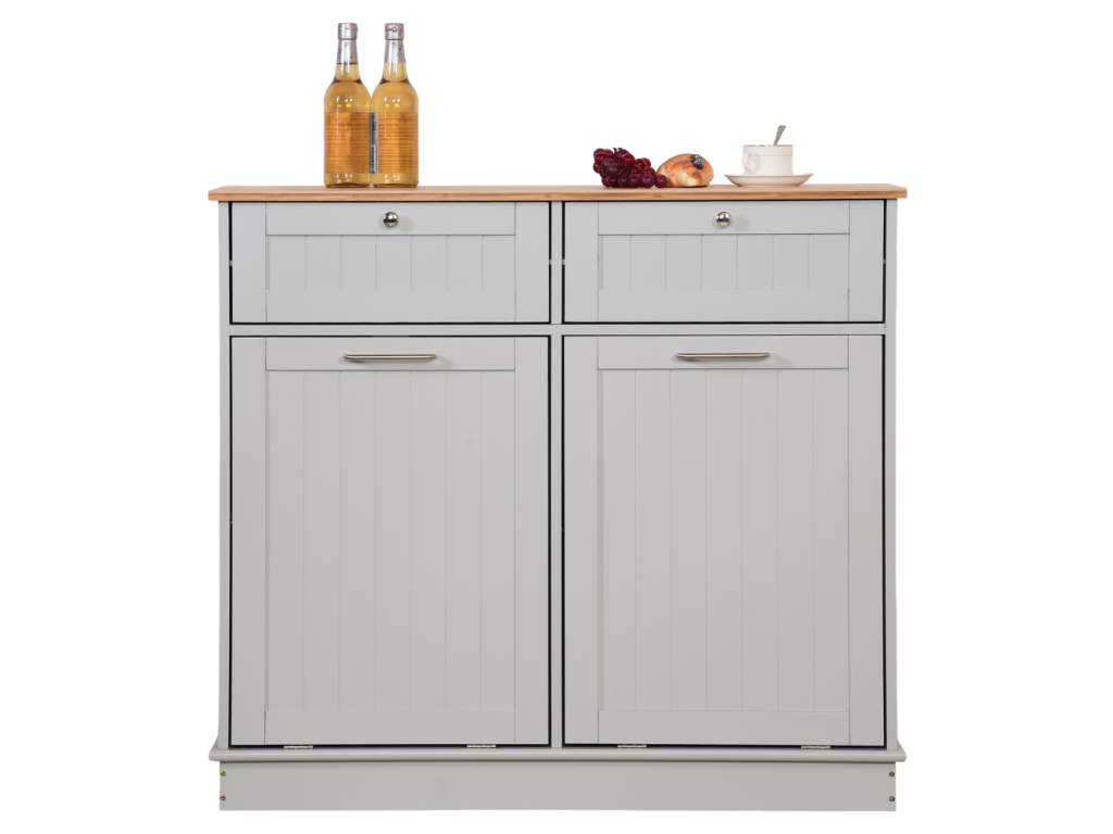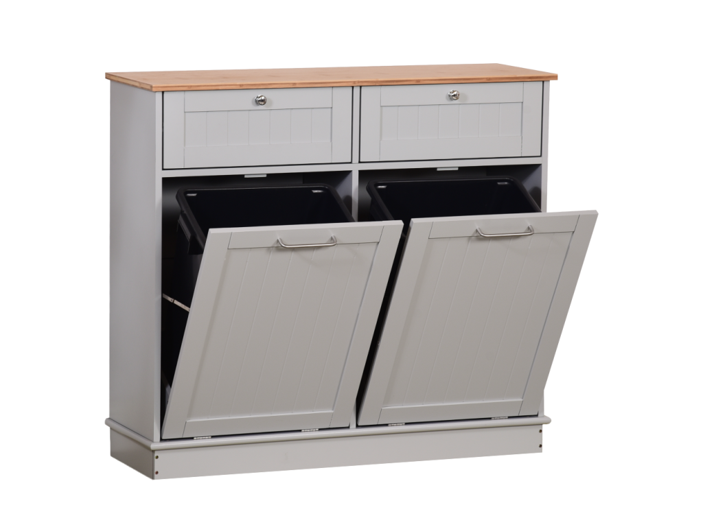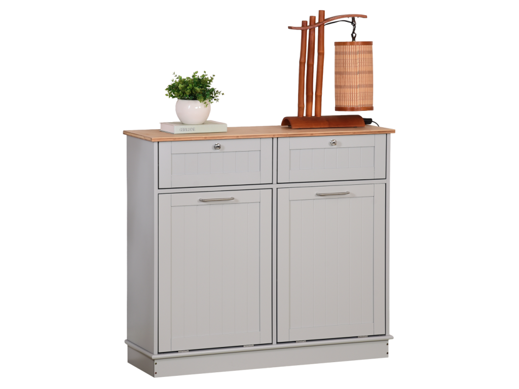Výklopná skrinka s odpadkovým košom, sivá/bambus, DELINS TYP 2