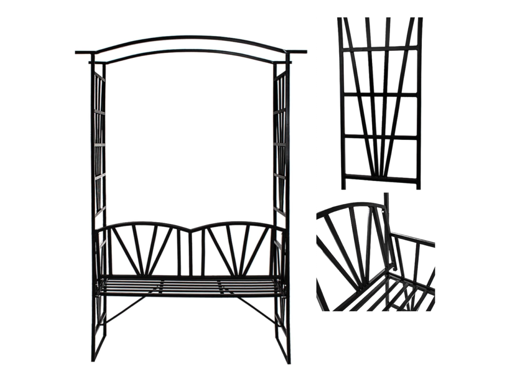 Záhradná lavička s pergolou, čierna, HAIFA