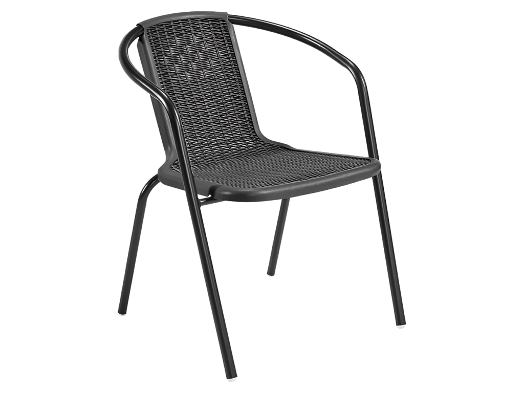 Záhradná stohovateľná stolička, čierna, oceľ/plast, FRENY