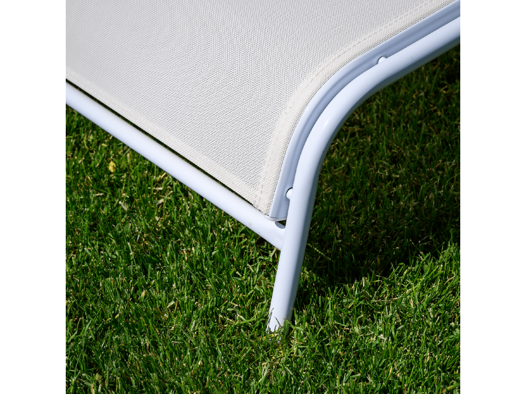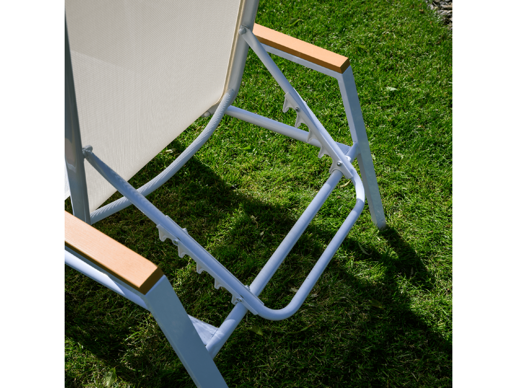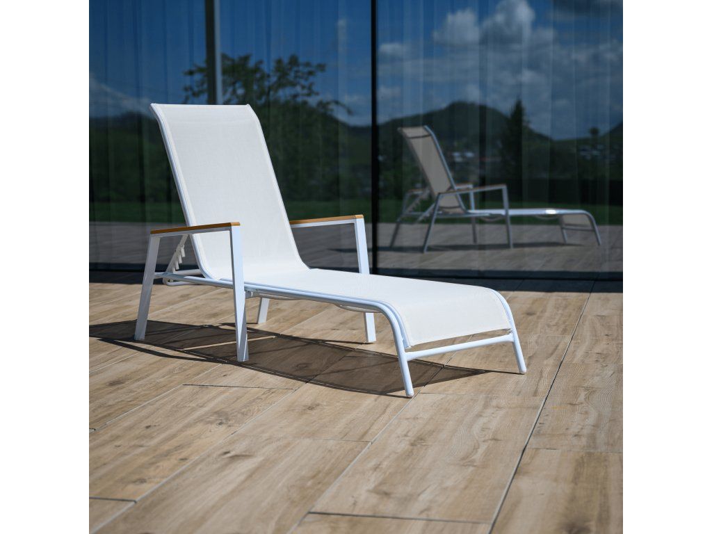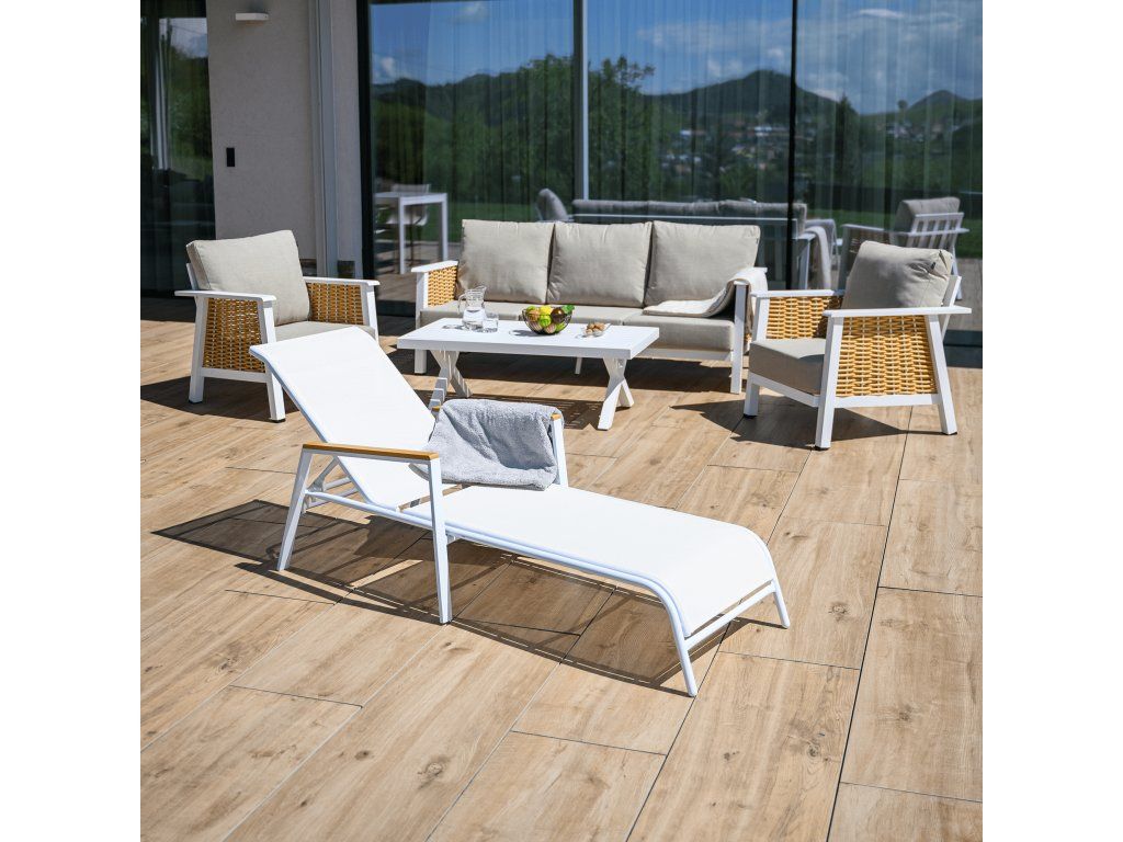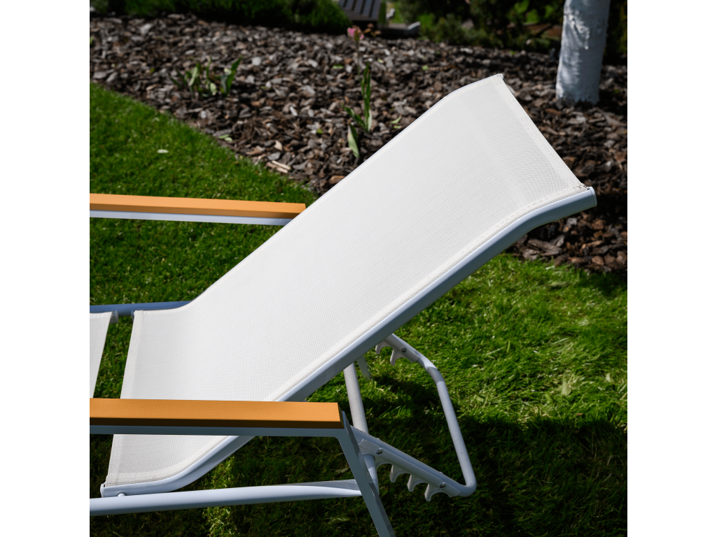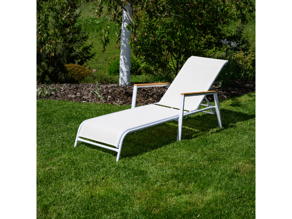 Záhradné ležadlo, biela oceľ/dub, BONTO