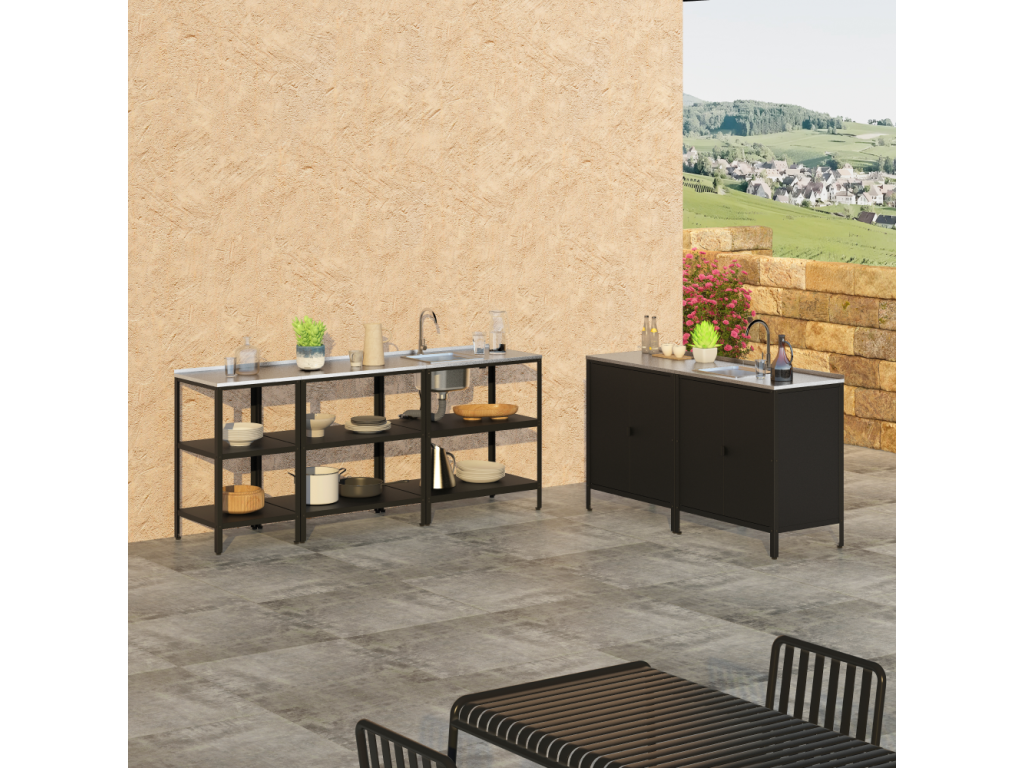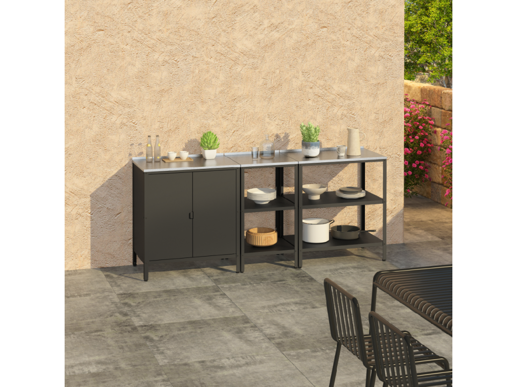 Záhradný kuchynský ostrovček, oceľ, čierna, INES TYP 1