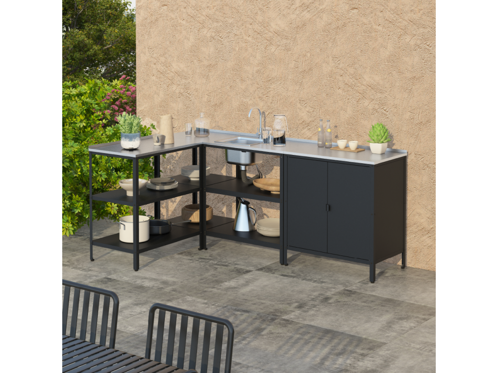 Záhradný kuchynský ostrovček, oceľ, čierna, INES TYP 2