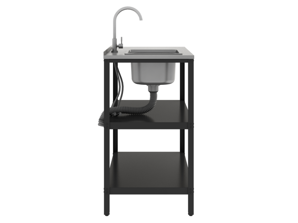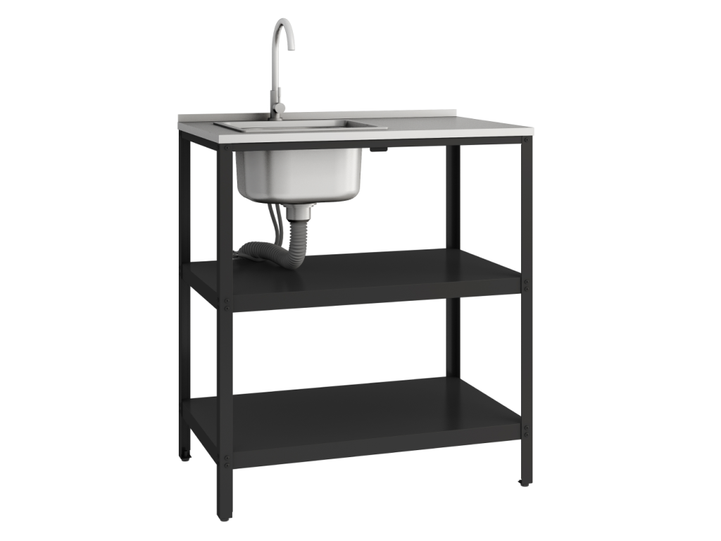 Záhradný kuchynský ostrovček s drezom, oceľ, čierna, INES TYP 4