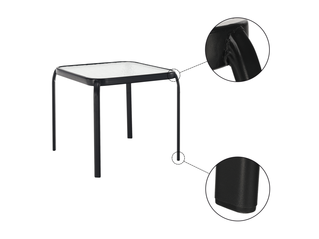 Záhradný príručný stolík, čiena oceľ/tvrdené sklo, RAMOL