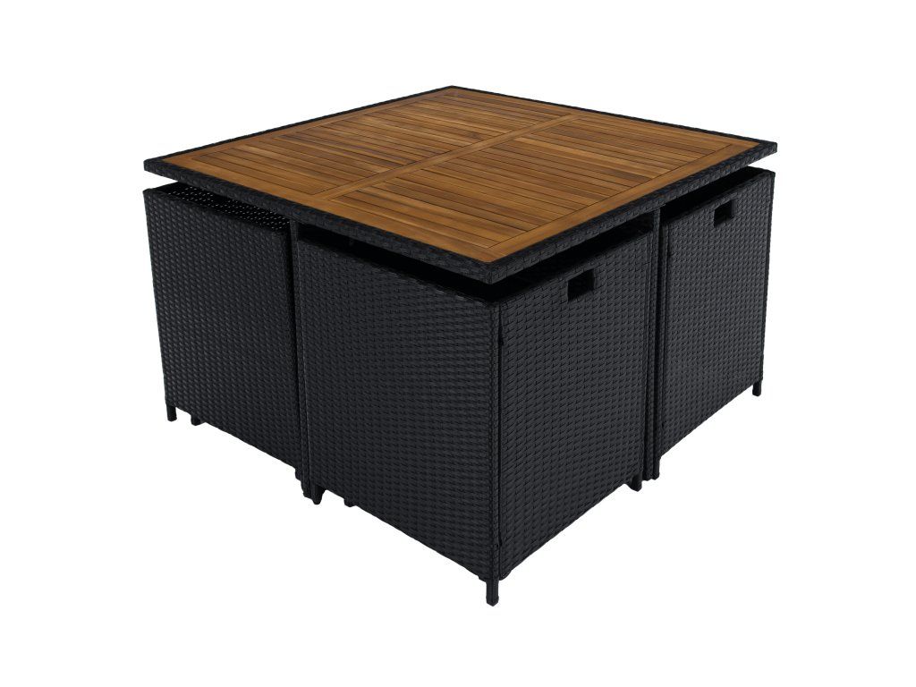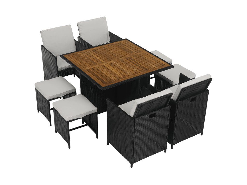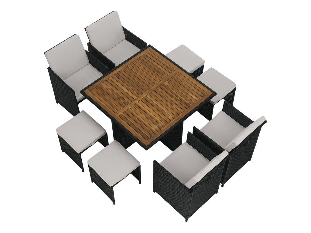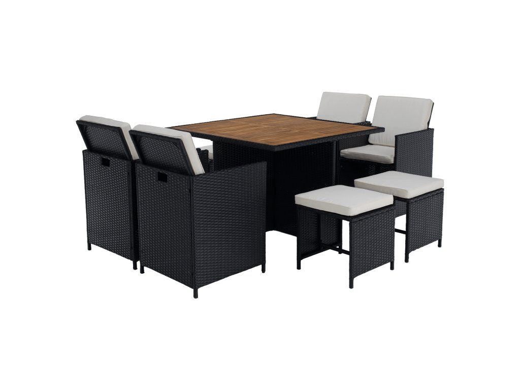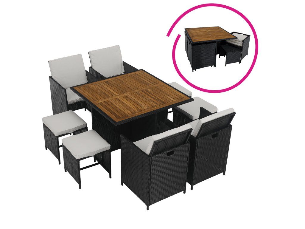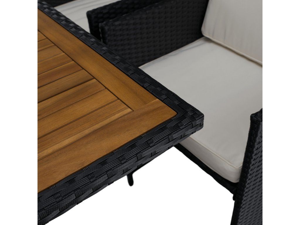 Záhradný ratanový set, akáciové drevo, čierna/krémová/prírodná, MELFORD
