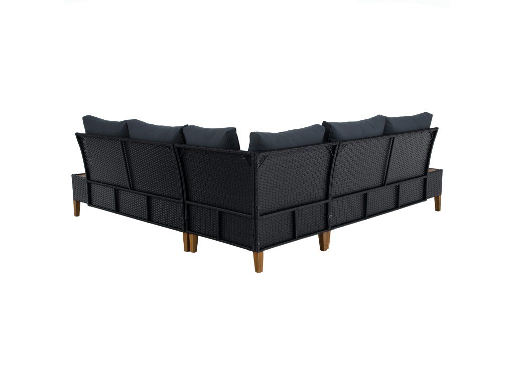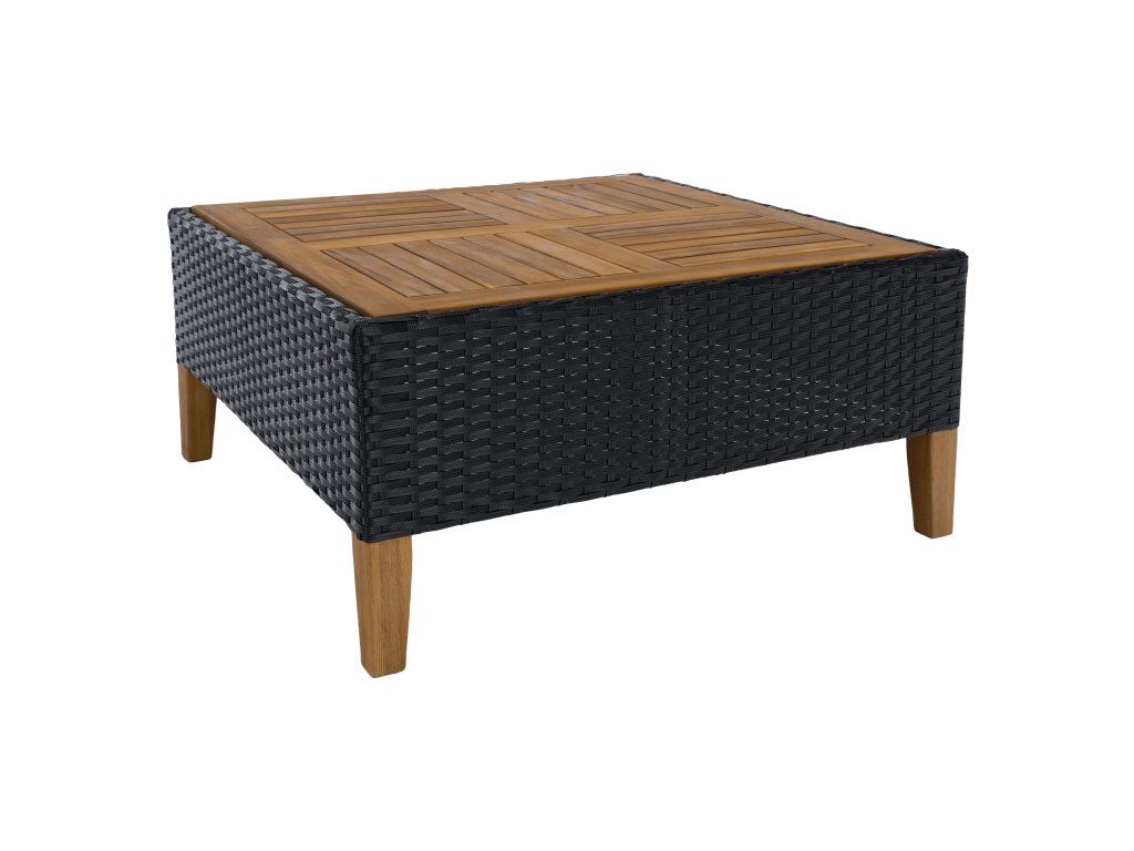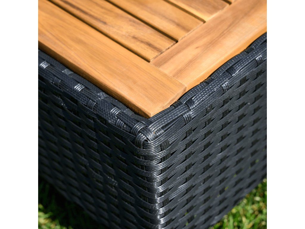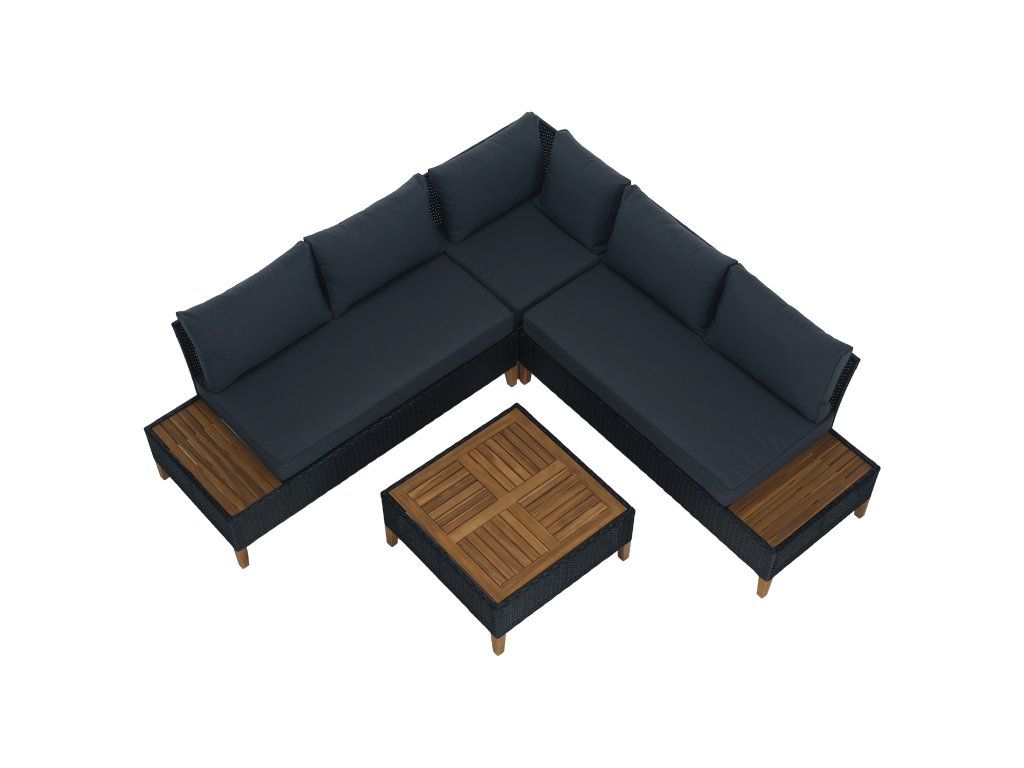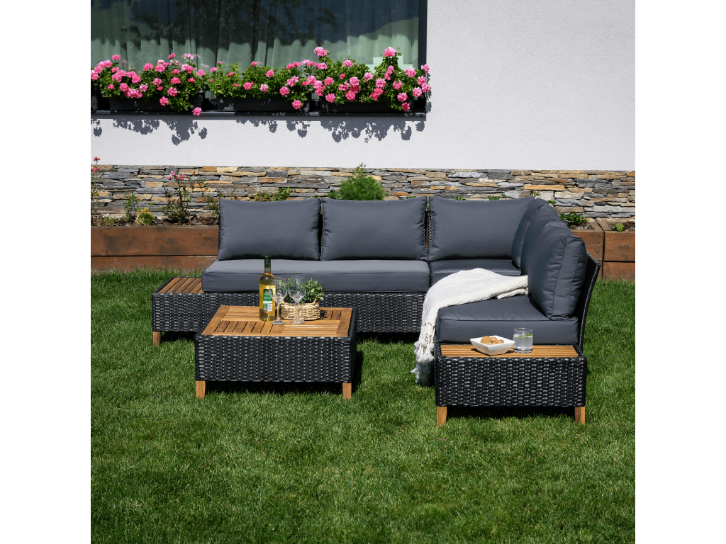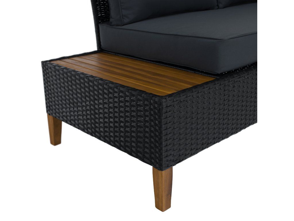 Záhradný ratanový set, akáciové drevo, čierna/sivá/prírodná, MALKOM