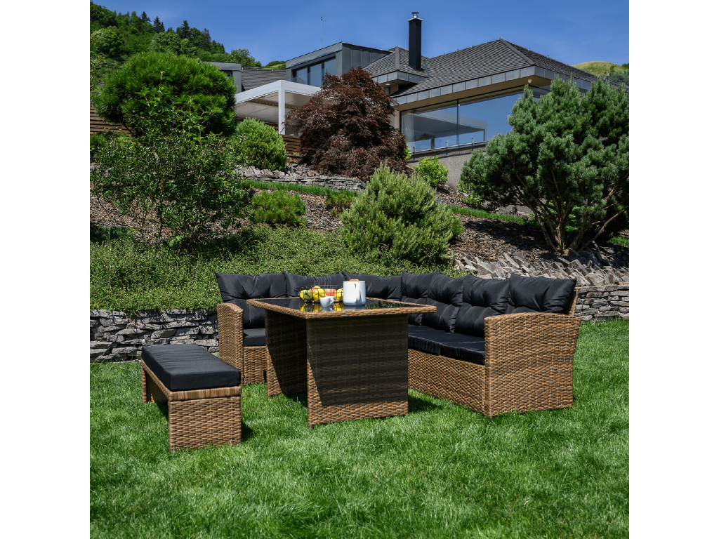 Záhradný ratanový set, svetlohnedá/čierna, MADUL