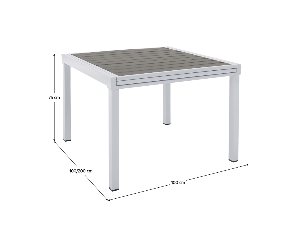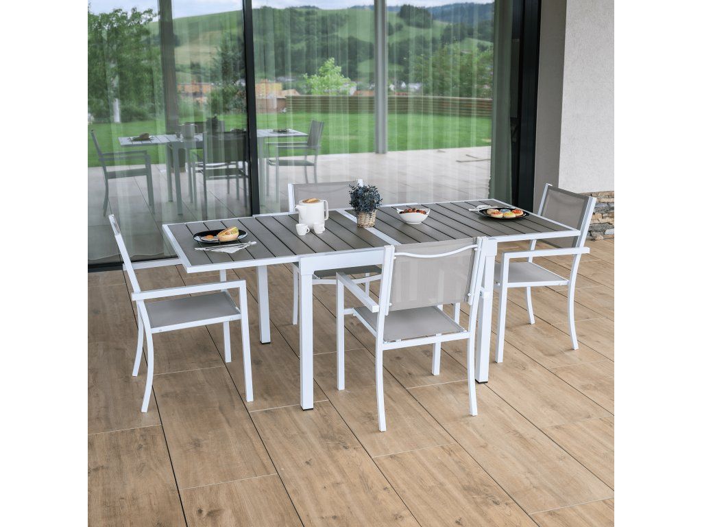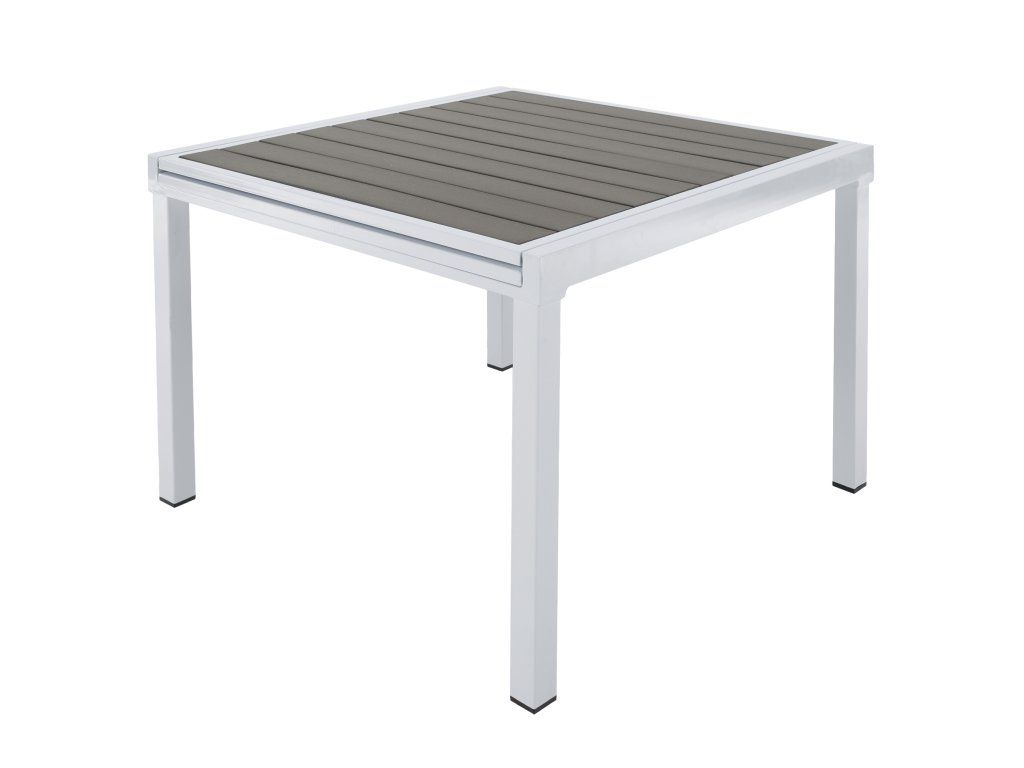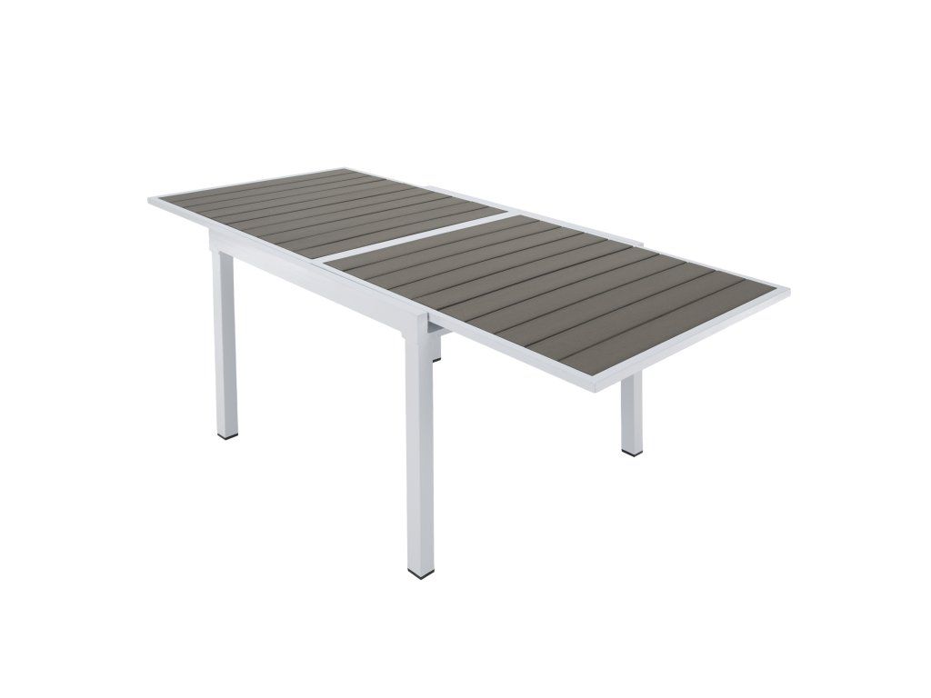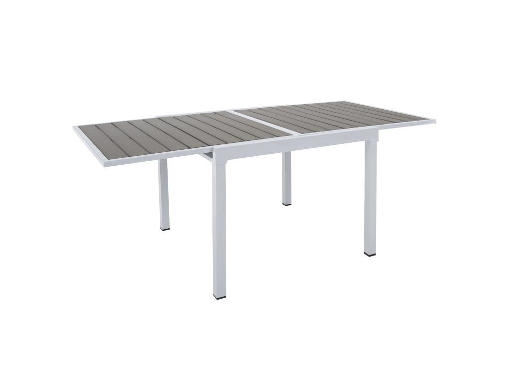 Záhradný rozkladací stôl, biela oceľ/sivá, DORIO