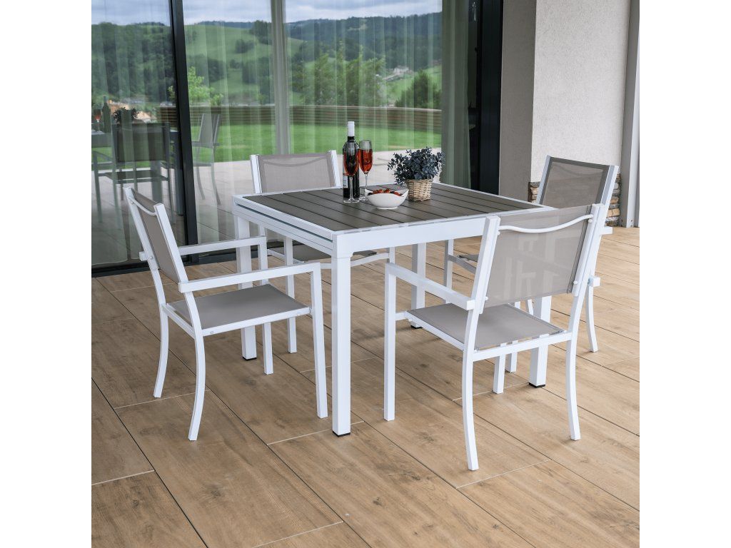 Materiál: oceľ/polywoodPrevedenie: biela/sivá
