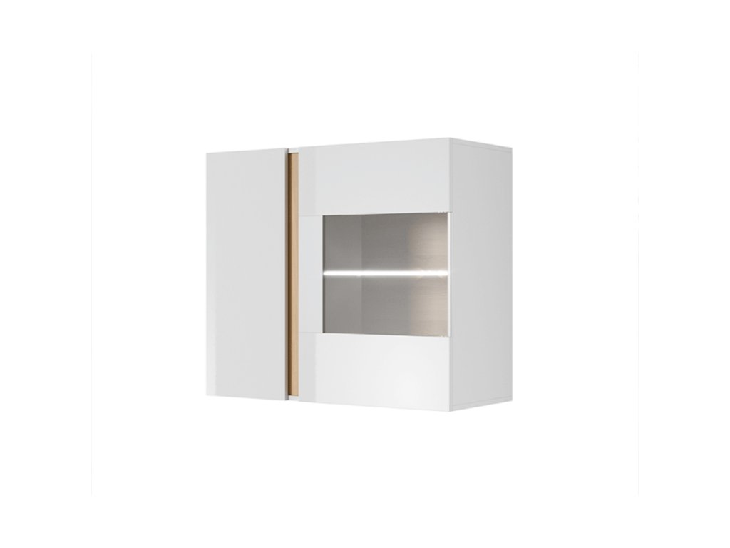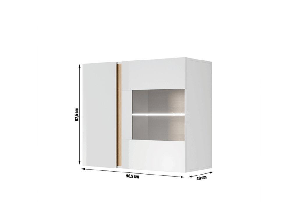 Závesná vitrína 96, biela/dub grandson/biely lesk, CITY