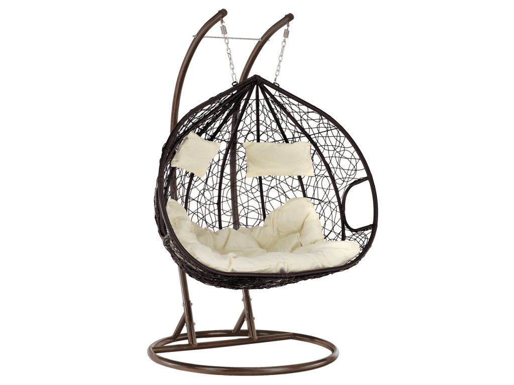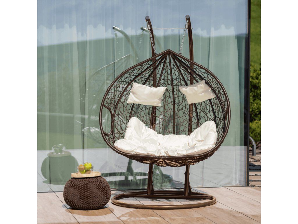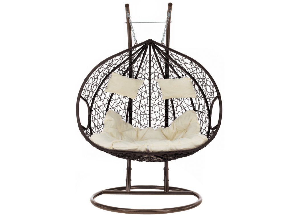Závesné dvojkreslo, medená/hnedá/krémová, DALVEA 2 NEW