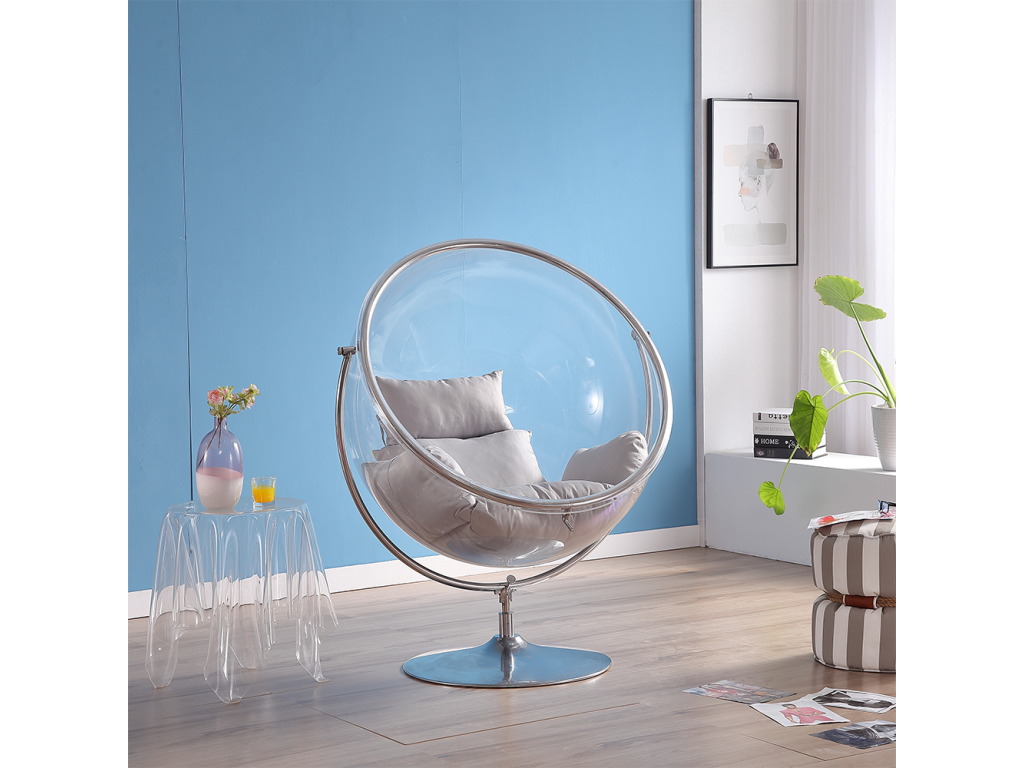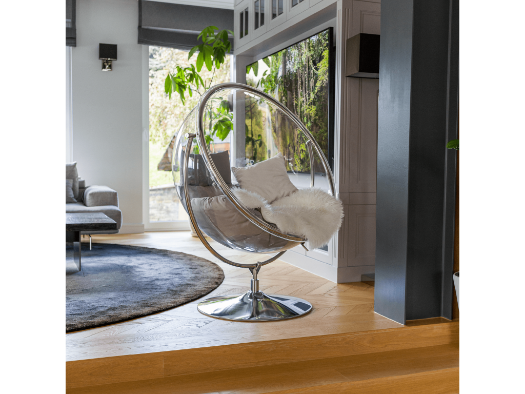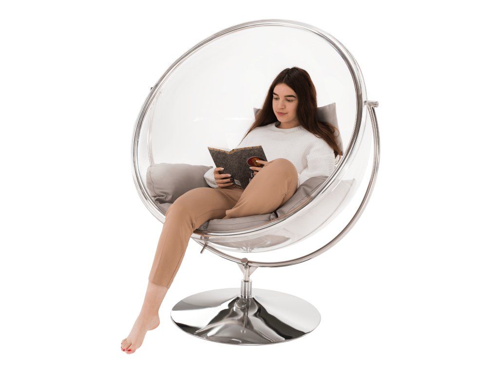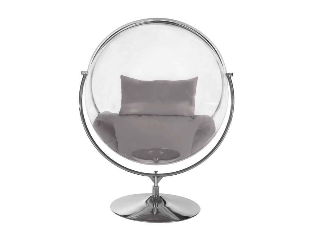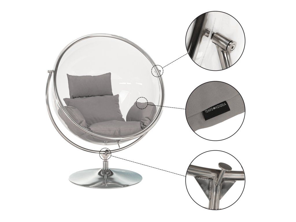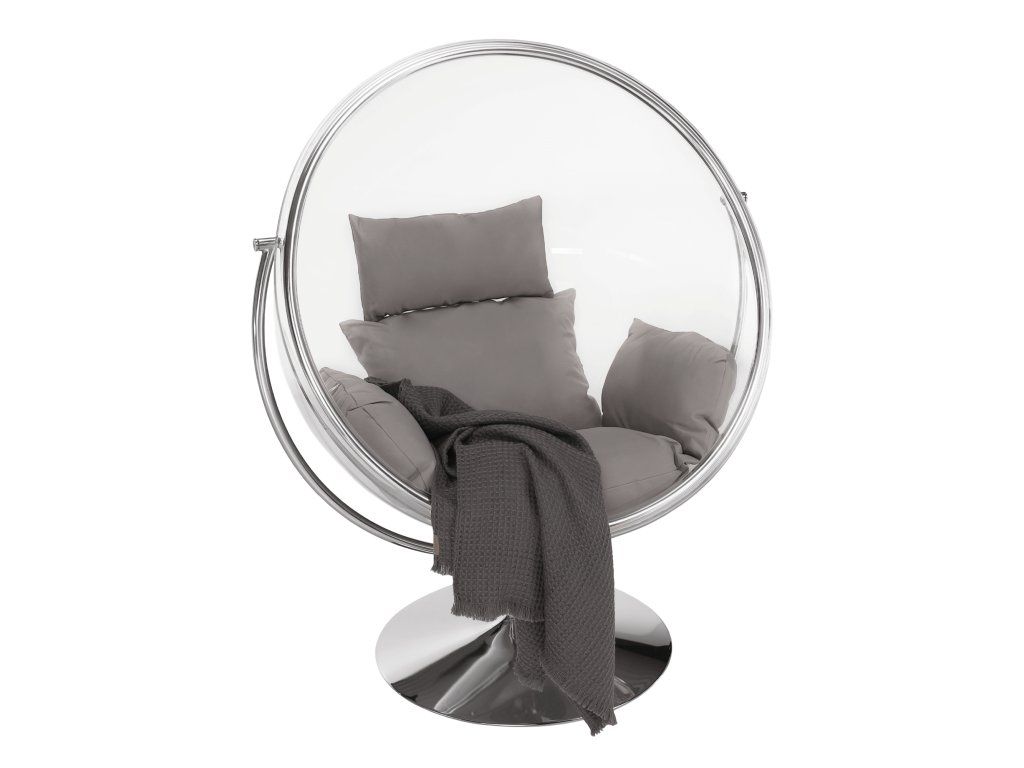 Závesné kreslo so stojanom, transparentná/strieborná/sivá, BUBBLE NEW TYP 2