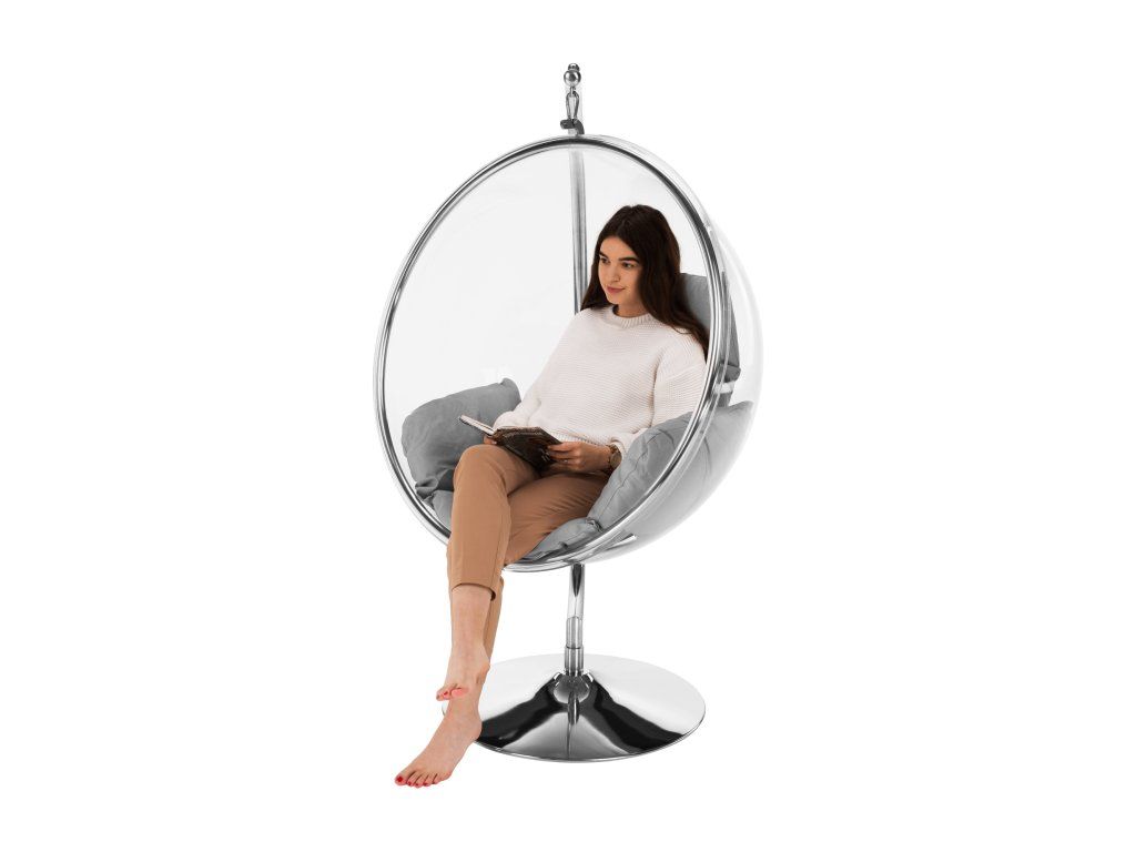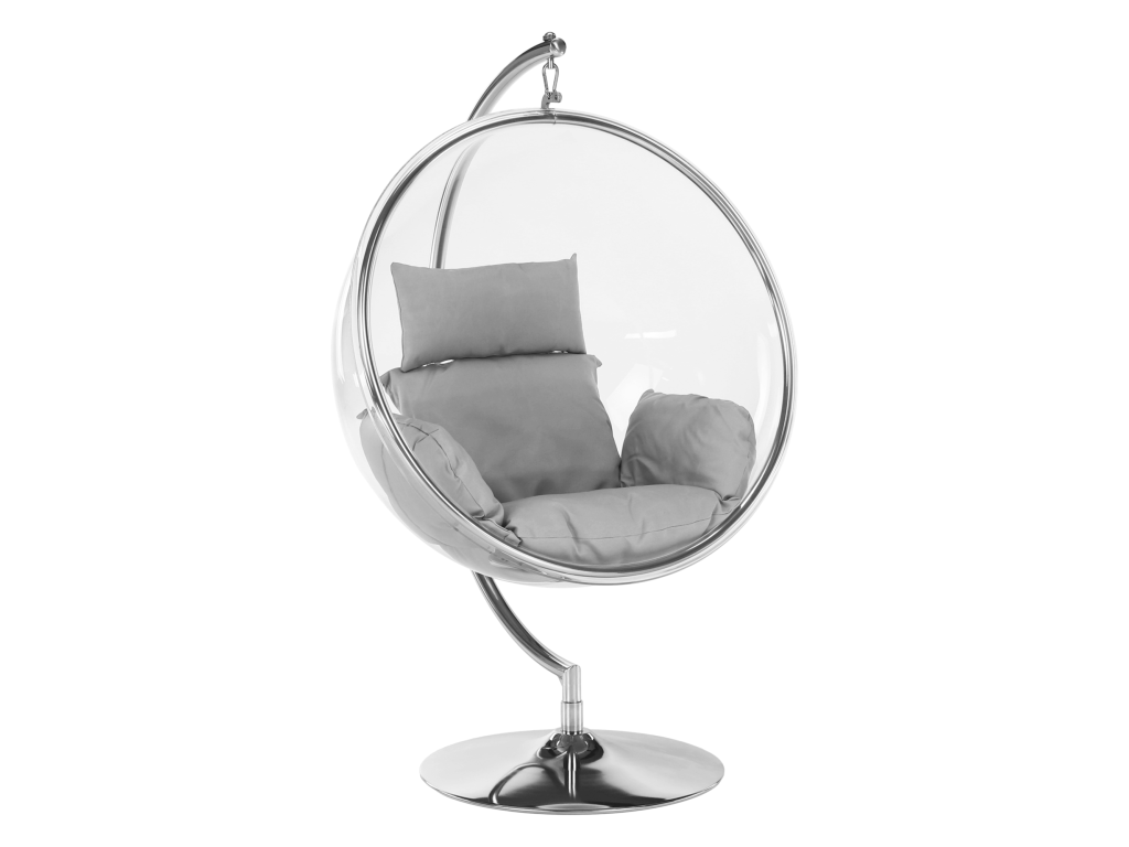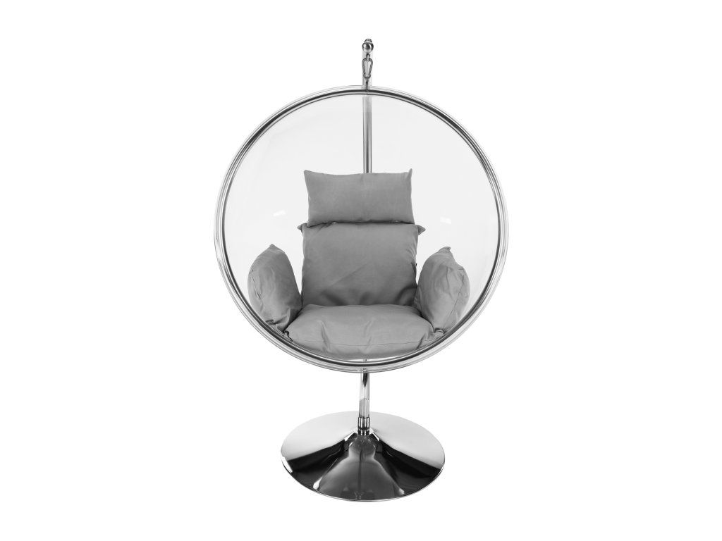 Závesné kreslo so stojanom, transparentná/strieborná/sivá, BUBBLE NEW TYP 3