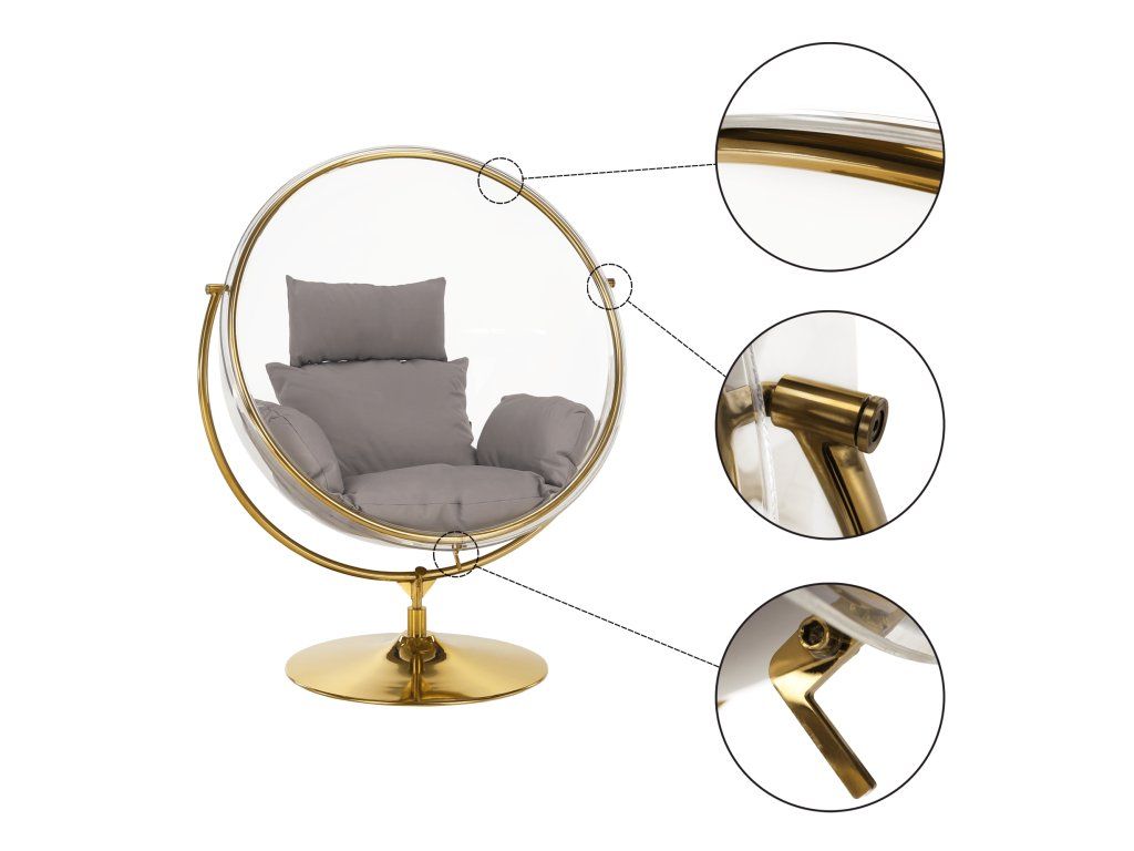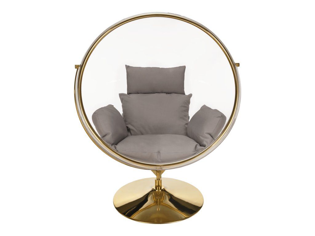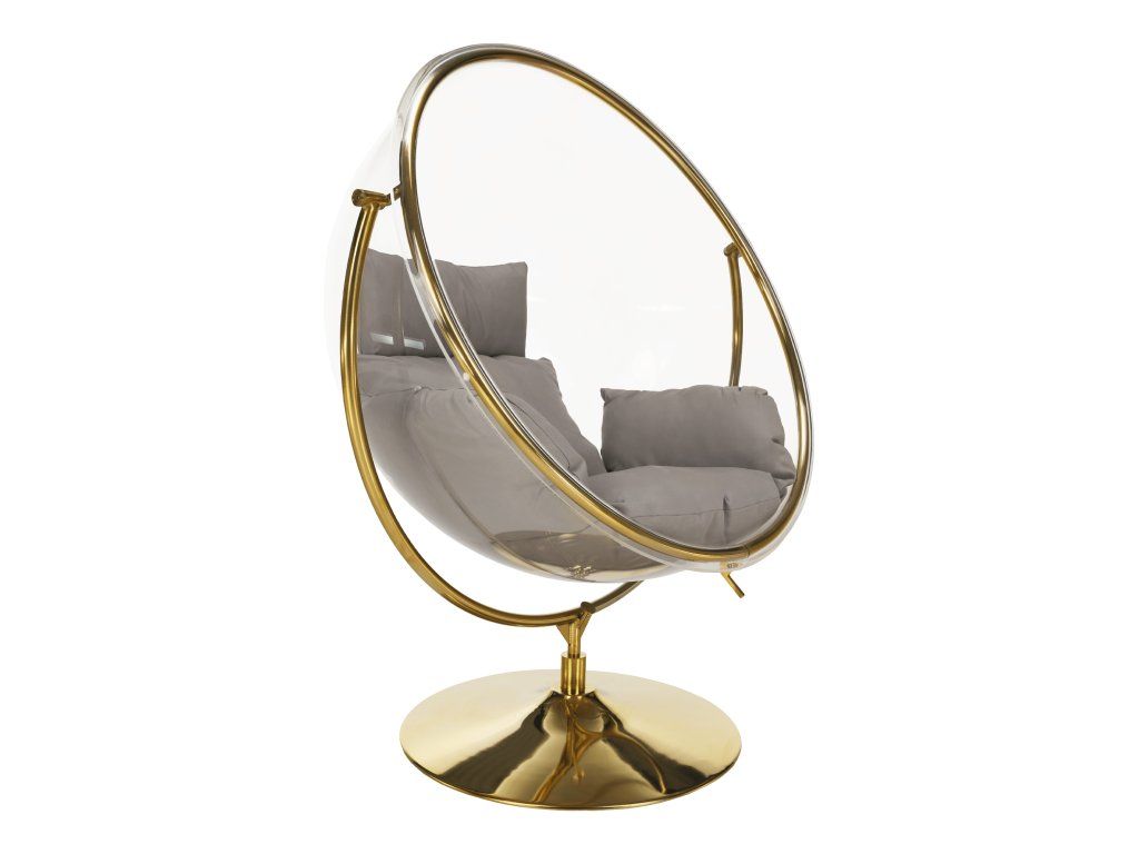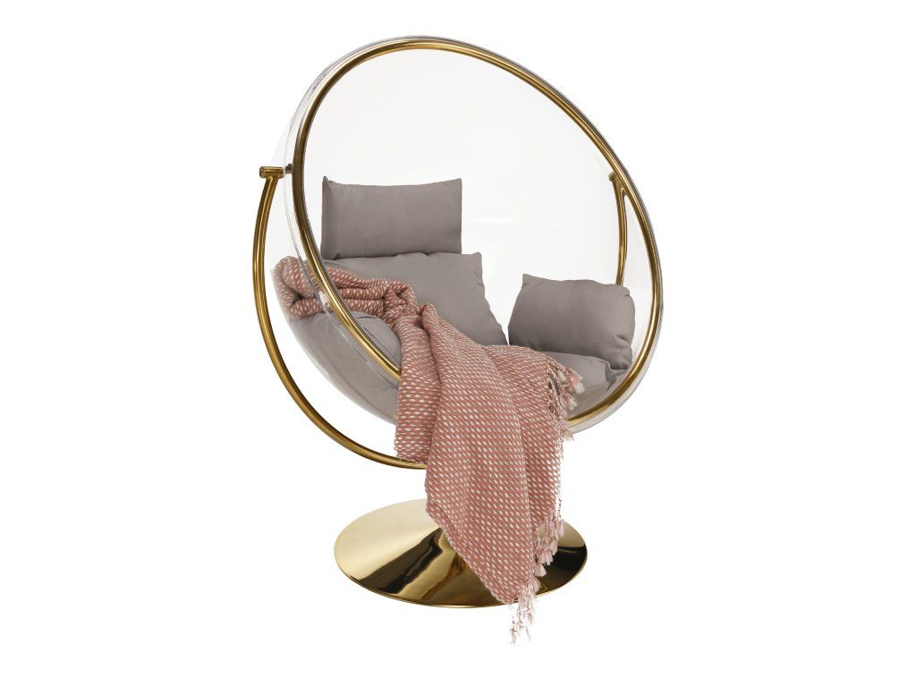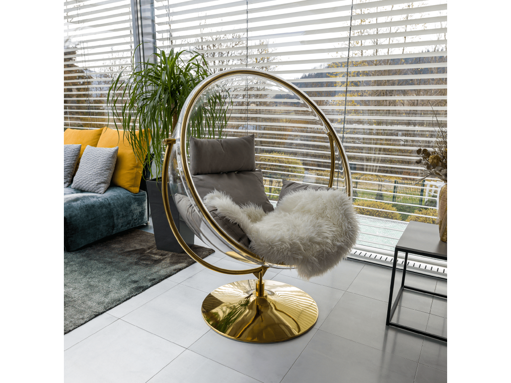 Závesné kreslo so stojanom, transparentná/zlatá/sivá, BUBBLE NEW TYP 2